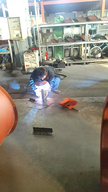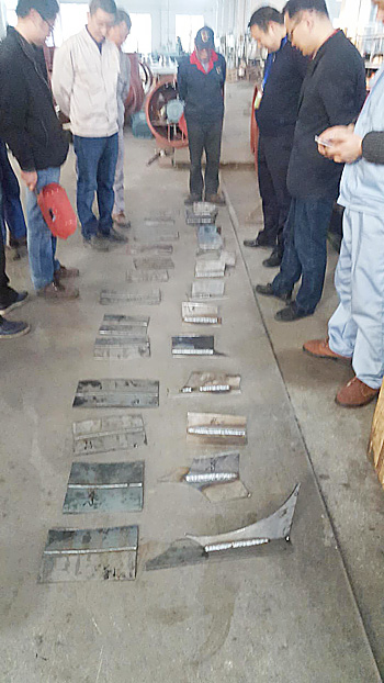 16點30分,比武正式拉開帷幕,來自各班組的13名焊工參與比武,比武開始前,公司外聘的技術(shù)專家宣布了比武的項目、要求、規(guī)則。為確保公平、公正、公開,由總經(jīng)理、制造部長、技術(shù)部長、品管部長、外聘技術(shù)專家組成評審小組,選手們分別用不同的編號代替,并一同標注到焊接的材料上,以示公正、公平。比武緊張有序的進行中,焊接作業(yè)上火花四濺,選手們?nèi)褙炞ⅲ蠹覉猿钟米约鹤詈玫臓顟B(tài)投入到比武中去。經(jīng)過緊張的角逐,圓風(fēng)機班組的李柏友拔的頭籌,獲得第一名,圓風(fēng)機班組的楊秀剛和防火閥班組的蔡國強分別獲得第二名和第三名。