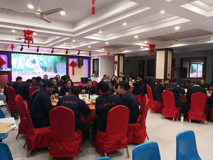 會(huì)后,大家一起在公司多功能廳共聚晚餐!