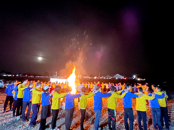 晚飯后,最讓人激動(dòng)人心的篝火晚會(huì)隨著“皇后大道東、兔子舞”等活潑愉快的旋律拉開帷幕,濃烈而又跳躍的篝火在曹娥江邊上猛烈的燃燒著,隨風(fēng)而舞的火苗竄上了秋高氣爽的天空,旺啊!燒啊!隊(duì)員們個(gè)個(gè)向火堆投木柴,眾人拾柴火焰高。大家手拉著手,手搭著肩,圍成一圏盡情歡快的跳著兔子舞,此時(shí)沒有老板、沒有領(lǐng)導(dǎo),大家是和諧共處的一家人,喜悅和興奮之情溢于言表。篝火活動(dòng)后還舉行了兩個(gè)全體員工共同參與的小游戲節(jié)目,PK成績,分享著快樂,參與人人得獲。最后,大家露營在以大地為床,天空為被的曹娥江邊上,吹著晚風(fēng),聽著音樂,有的持續(xù)喝著小酒,三五成隊(duì)的暢談工作生活,有的占進(jìn)帳篷打起小牌,溫馨的場面讓人留連!