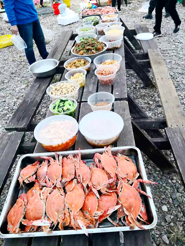 這次活動(dòng)公司精心選擇了美麗的曹娥江邊上露營野炊。20日下午兩時(shí)許,按預(yù)先分組設(shè)立的友誼隊(duì)和陽光在各自隊(duì)長的帶領(lǐng)下,載著近一周精心準(zhǔn)備的各種活動(dòng)用品,有吃的,有睡的,有燒的,有玩的滿滿兩大卡車,浩浩蕩蕩的奔赴活動(dòng)現(xiàn)場。到了活動(dòng)現(xiàn)場,大家各自忙碌了開來,有搭帳篷的,有搭灶臺(tái)的,有洗菜的,有切肉的,大家有說有笑,忙碌開心而又有條不紊的工作著。不到近三小時(shí)的工作,大家已把豐盛的晚餐準(zhǔn)備就緒,有燉的,有炒的,有煮的,有煎的,色香味俱全,讓人看的口水直流。臨近五點(diǎn),準(zhǔn)備開飯前,首先由總經(jīng)理帶隊(duì)的管理委員會(huì)成員對(duì)兩隊(duì)野炊成果進(jìn)行了一一品嘗一一點(diǎn)評(píng),并給予打分。由于大家事先有精心準(zhǔn)備,菜肴廚藝比拼難分高低。開吃啦!吹著曹娥江習(xí)習(xí)涼風(fēng),大家喝著啤酒唱起了豪邁的大河向東流,相與碰杯,歡樂的氣氛無語論比。