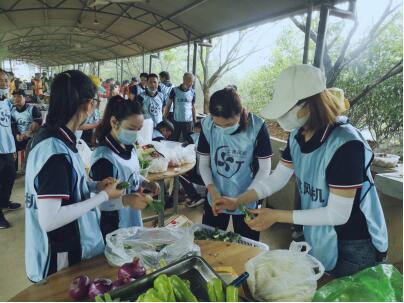 藍(lán)藍(lán)天空,美得不像話吧!大家的心情也像這明媚的陽光一樣,到了拓展場地第一件事就是集合,看著一列列方陣多么地整齊,這就是上建人的風(fēng)貌!隨后營銷總監(jiān)兼拓展教練沈總介紹了上午的拓展任務(wù),廚藝大比拼!當(dāng)沈總說開始的話音剛落,六支隊(duì)伍的隊(duì)員頃刻間化整為零,有的去準(zhǔn)備食材、有的拿起鍋勺化身大廚、有的點(diǎn)燃烤爐搖身一變成為全場最火熱的那個(gè)人,場面一下子熱鬧起來。