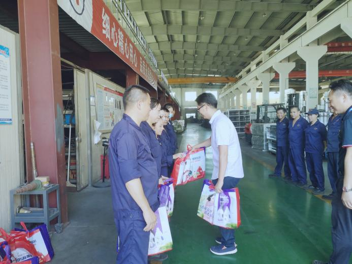 今日,百官街道工會慰問人員一行來我司,參觀了公司車間、榮譽走廊、會議室等場所,為多名職工送去夏令慰問品。在慰問過程中,街道工會專員與我司職工深入交流,詳細詢問了職工們的工作、生活情況,向堅守高溫崗位的一線職工表示親切的慰問和真摯的感謝,鼓勵廣大職工要發(fā)揚工人階級不怕苦的精神,戰(zhàn)高溫、斗酷暑,保安全,干好本職工作!