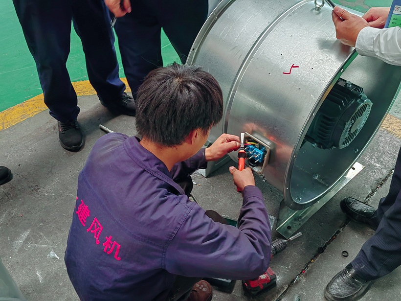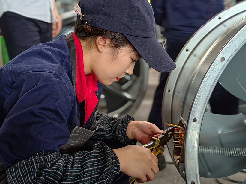 風(fēng)機(jī)接線環(huán)節(jié)選手們個(gè)個(gè)斗志昂揚(yáng),動(dòng)作麻利,從選尺寸,安裝,擰螺絲,調(diào)平整等各道工序得心應(yīng)手,心靈手巧應(yīng)用的淋漓盡致,讓在場(chǎng)觀摩的公司領(lǐng)導(dǎo)嘖嘖稱贊。
