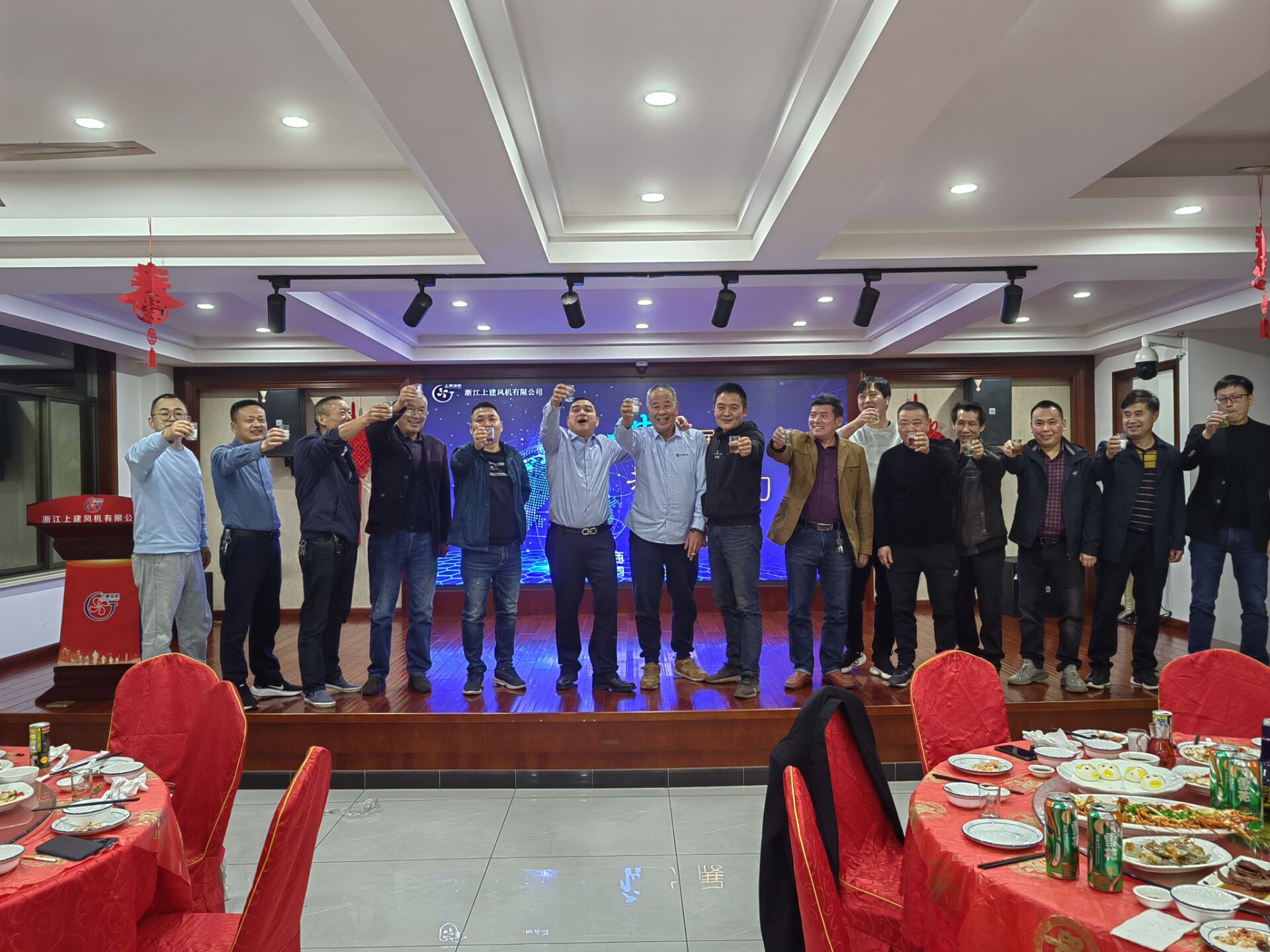 會議結(jié)束以后,公司誠邀各位供應(yīng)商代表會餐。在酒會上主持人貝建波表示公司取的成績得益于市場母體的滋養(yǎng),凝聚了上建風機全體員工的汗水和智慧,更離不開商業(yè)伙伴們的大力支持。并說道“同商,同道,同樂;有你們的支持,我們更有信心;有你們同行,我們更有力量;有我們同在,大家幸?鞓!”