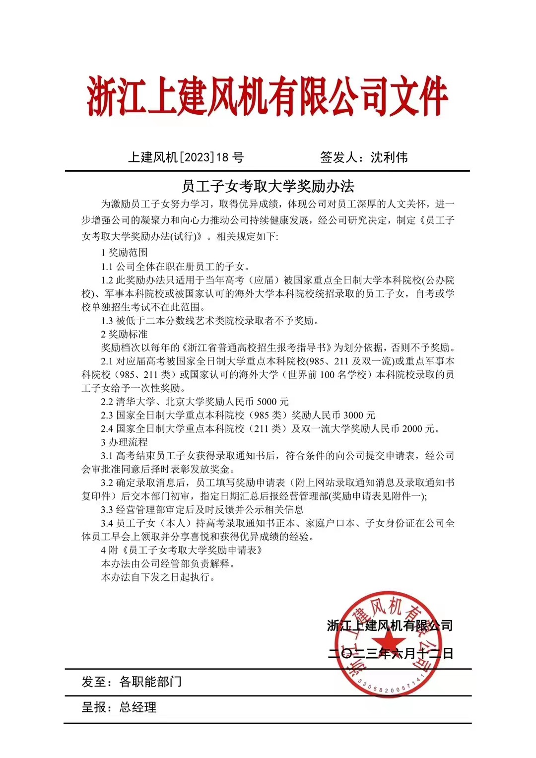 公司出臺(tái)《員工子女考取大學(xué)獎(jiǎng)勵(lì)辦法》