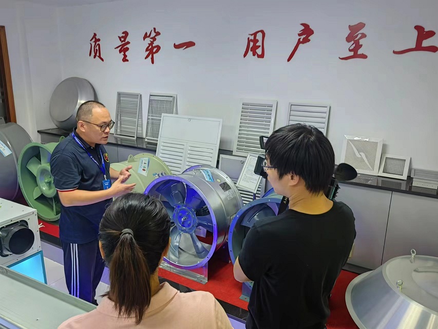最后采訪記者進(jìn)入車間進(jìn)行拍攝,作為風(fēng)機(jī)市場最早的開拓者之一,我司目前已經(jīng)有了完善的產(chǎn)品鏈以及未來幾年內(nèi)的產(chǎn)品規(guī)劃。目前市場中的HTFC系列柜式離心風(fēng)機(jī),SJF系列高效節(jié)能軸流風(fēng)機(jī)和RTC系列新型屋頂風(fēng)機(jī)都受到了廣泛好評,消防排煙防火閥、多葉送風(fēng)口、消聲器等產(chǎn)品都有生產(chǎn)線,精湛的工藝與高效的生產(chǎn)得到采訪記者的嘖嘖稱贊。