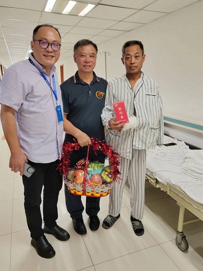 7月14日,我司總經(jīng)理沈利偉、工會主席貝建波、品質(zhì)管理部總監(jiān)譚建江一行看望慰問因公受傷的徐永明同志。并代表公司向徐永明同志送去慰問品,將公司的關(guān)懷送到員工心中。