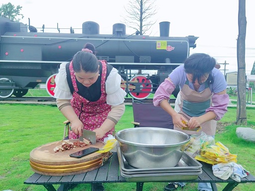 團(tuán)建現(xiàn)場(chǎng)熱鬧非凡!有的乘坐“海潮號(hào)”在白馬湖中肆意馳騁,有的在“0918”號(hào)列車前打卡留念,有的在天幕大草帽下嘮嘮家常,有的在精心調(diào)制獨(dú)家秘制燒烤……一直到太陽(yáng)西斜。