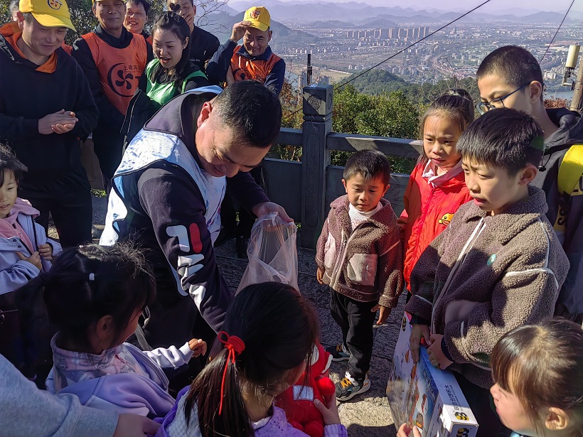 登上山頂后合影留念。公司領(lǐng)導(dǎo)贊揚了大家在登山過程中表現(xiàn)出來的團(tuán)結(jié)互助精神和堅韌不拔的毅力,并希望大家在以后的工作中,繼續(xù)發(fā)揚登高精神,為上建風(fēng)機的和諧發(fā)展做出更大的貢獻(xiàn)。最后我們公布了男女組的競賽成績,我們親愛的童海標(biāo)董事長更是為員工的子女頒發(fā)了精美禮品。
